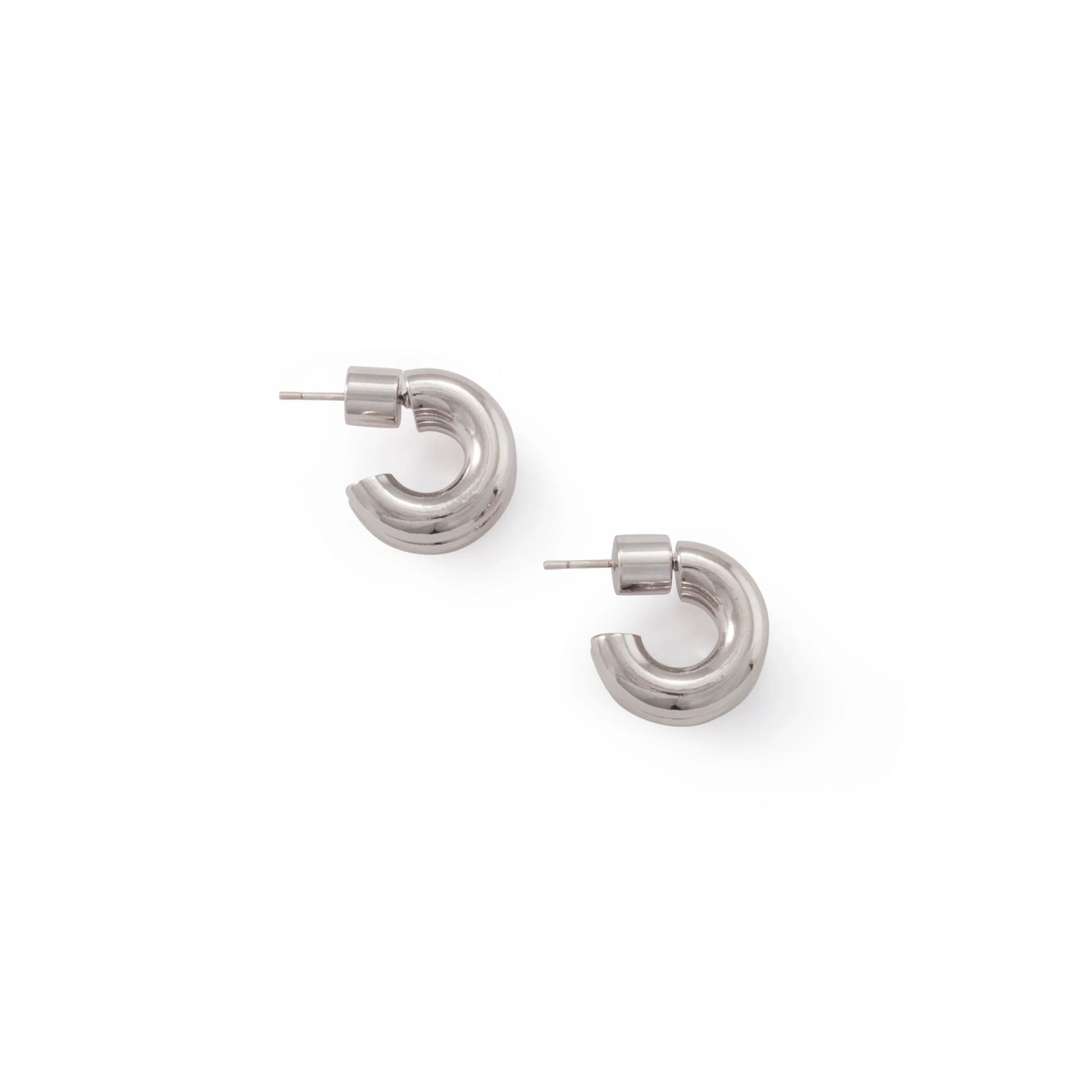 Small, extra chubby open-back hoops. Double-hoop look because double the pleasure double the fun.