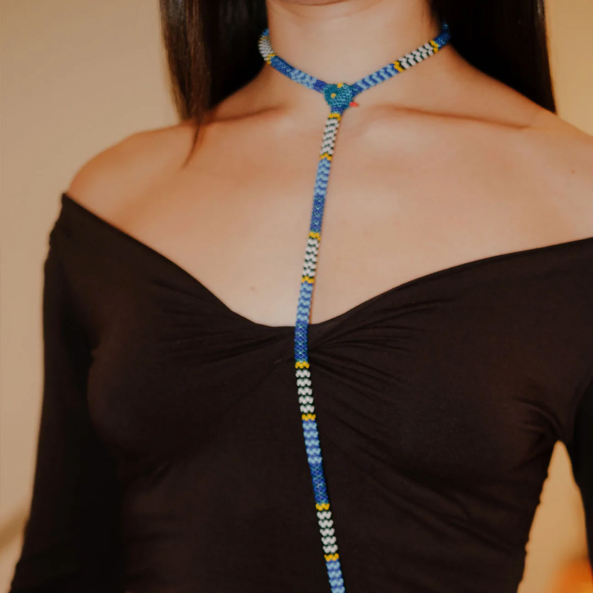 Care: To prevent threads from unravelling, avoid prolonged time under water. Keep away from sharp objects. Ideally, hang neckalce when garment when not worn.