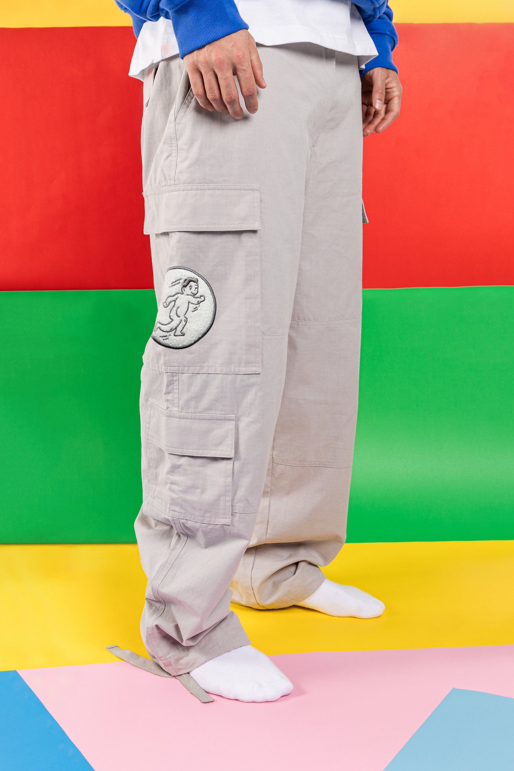 The perfect summer pant doesn’t ex…. It does now! Lightweight, durable, and as always impeccably comfortable. We did it, we made your summer uniform cargos. Tons of pockets for all your important shit and a chenille patch of your favourite mascot - the Nude Boy. Ripstop fabric and a baggier look with a true to size fit. Draw strings on the ankles to tie up or let loose depending on your outfit.